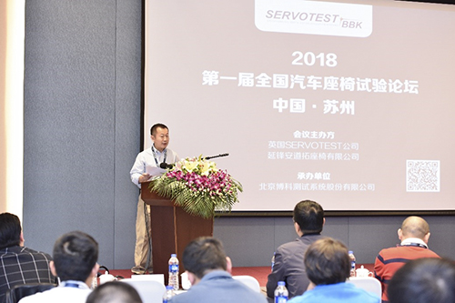 英国SERVOTEST公司中国代表处,北京博科测试系统股份有限公司总经理张延伸先生出席论坛并致欢迎词。在致辞中,他分析了汽车座椅行业的发展趋势和未来,肯定了论坛交流对于座椅试验行业发展的重大意义。